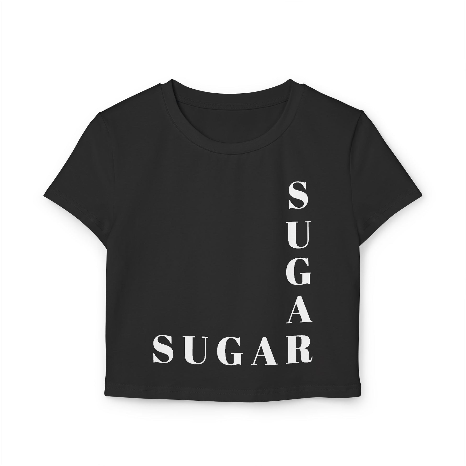 Sugar Graphic Baby Tee — Women’s Cropped Casual Tee with Vertical/Horizontal Text